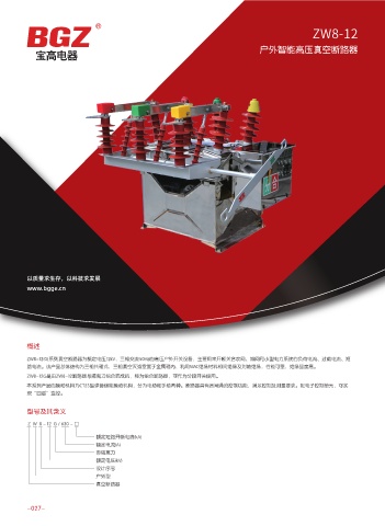 ZW8-12(G)系列真空断路器为额定电压12kV,三相交流50Hz的高压户外开关设备,主要用来开断关合农网、城网和小型电力系统的负荷电流、过载电流、短
