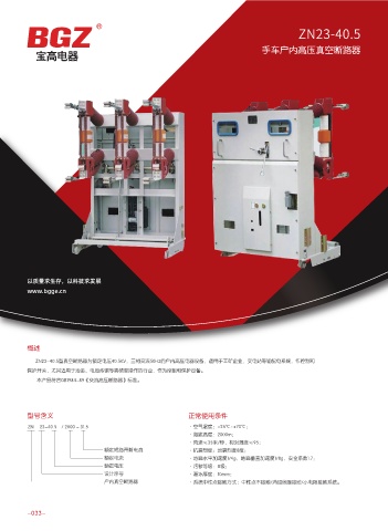 ZN23-40.5型真空断路器为额定电压40.5KV,三相交流50Hz的户内高压电器设备,适用于工矿企业,变电站等输配电系统,作控制和