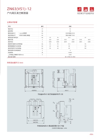 ZN63(VS1)-12 型户内高压真空断路器,系三相交流50Hz 额定电压为12kV 电力系统的户内开关设备,作为电网设备、工矿企业动力设备的保护和控制单元。