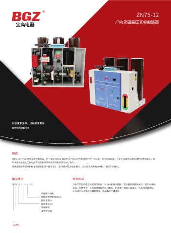 ZN75-12 户内永磁高压真空断路器,系三相交流50Hz 额定电压为12kV电力系统的户内开关设备,作为电网设备、工矿企业动力设备的保护和控制单元。适