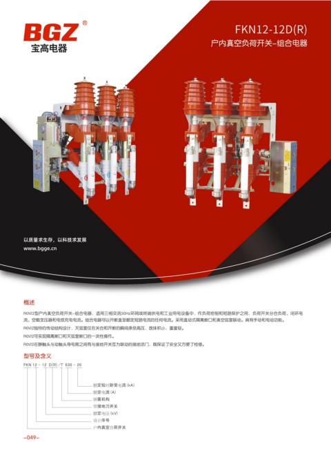 流、空载变压器和电缆充电电流。组合电器可以开断直至额定短路电流的任何电流。采用直动式隔离断口和真空弧室联动。具有手动和电动功能。