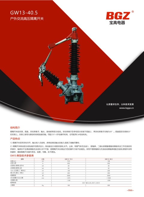 开关用绝缘棒钢开展操作。它们皆由底坐、支柱绝缘子、导电部分和机关部分合成。引用闸刀式结构分从事闸达到堵截和闭合电路。每相闸刀由两片导电刀 产品特点