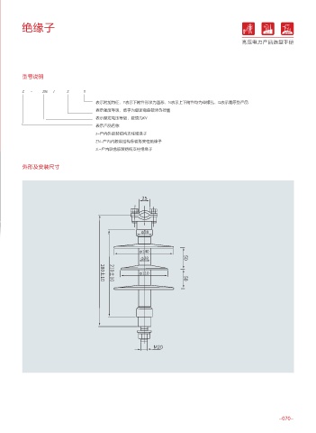 保证机械强度、防止松动、扭转。瓷件表面均匀上白釉,金属附件表面涂灰磁漆。绝缘子瓷件主体结构有空腔隔板(可击穿式)结构和实心(不可击穿式)