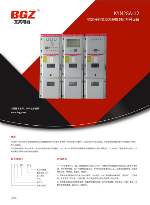 KYN28A-12(Z) (GZS1) 型铠装移开式交流金属封闭开关设备(以下简称“开关设备")它适用于三相交流50Hz电力系统。用于接受和分配电能并对电路实行控制、