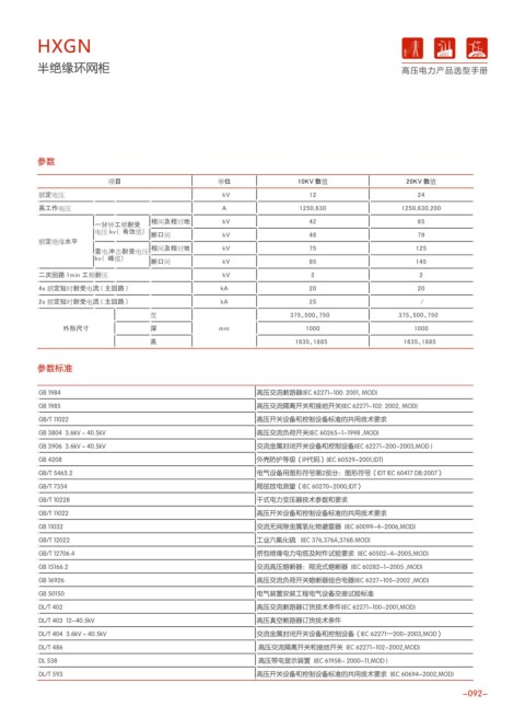 半绝缘环网柜 半绝缘环网柜 高压电力产品选型手册